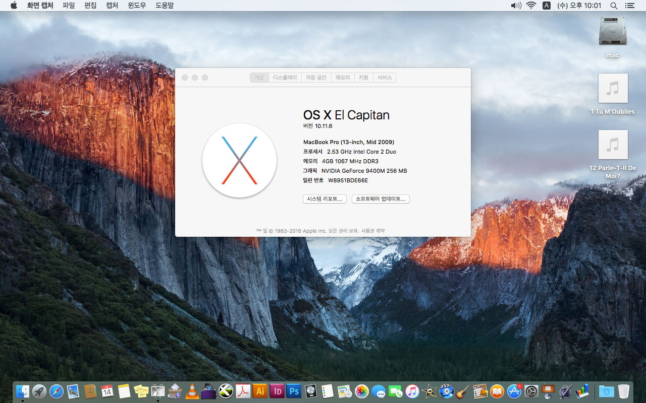2009년 맥북프로 13인치- 맥 디자인프로그램들이 사진처럼