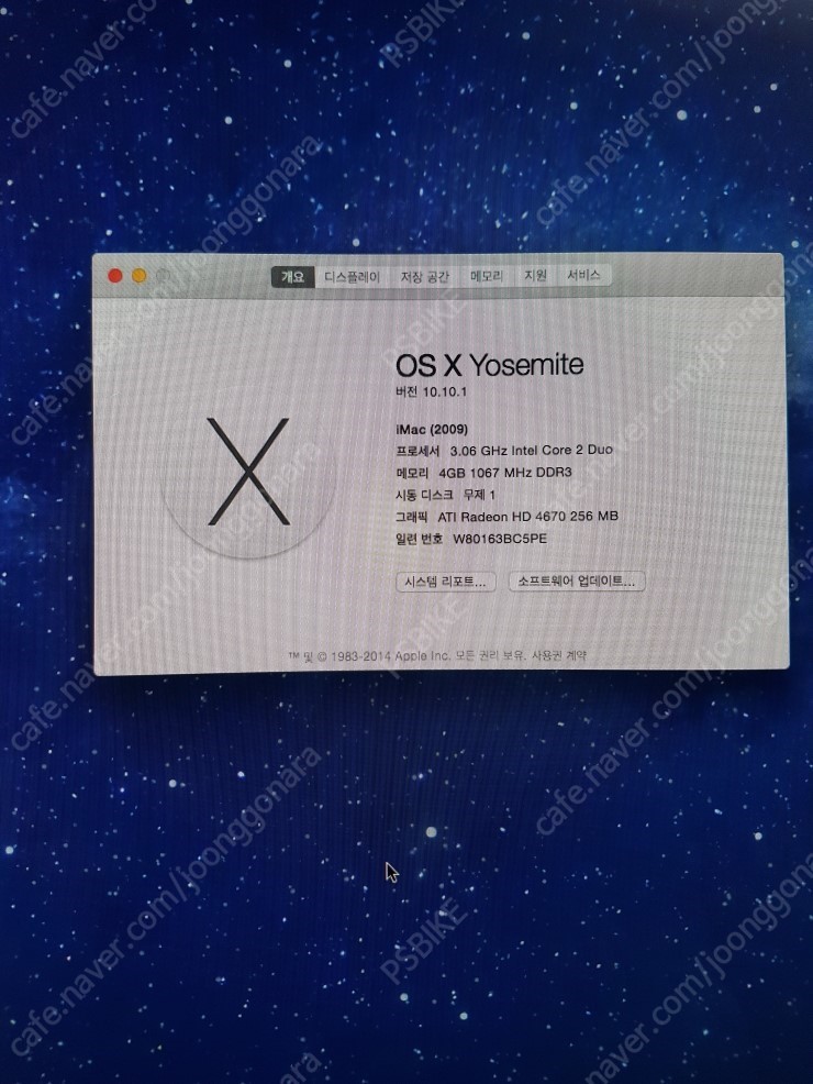 아이맥 2009년 late 버전 27인치구요 집에서 애지중지사용해서 딱히 큰문제점이나 기스등은 잘안보이고 그냥 깨끗합니다