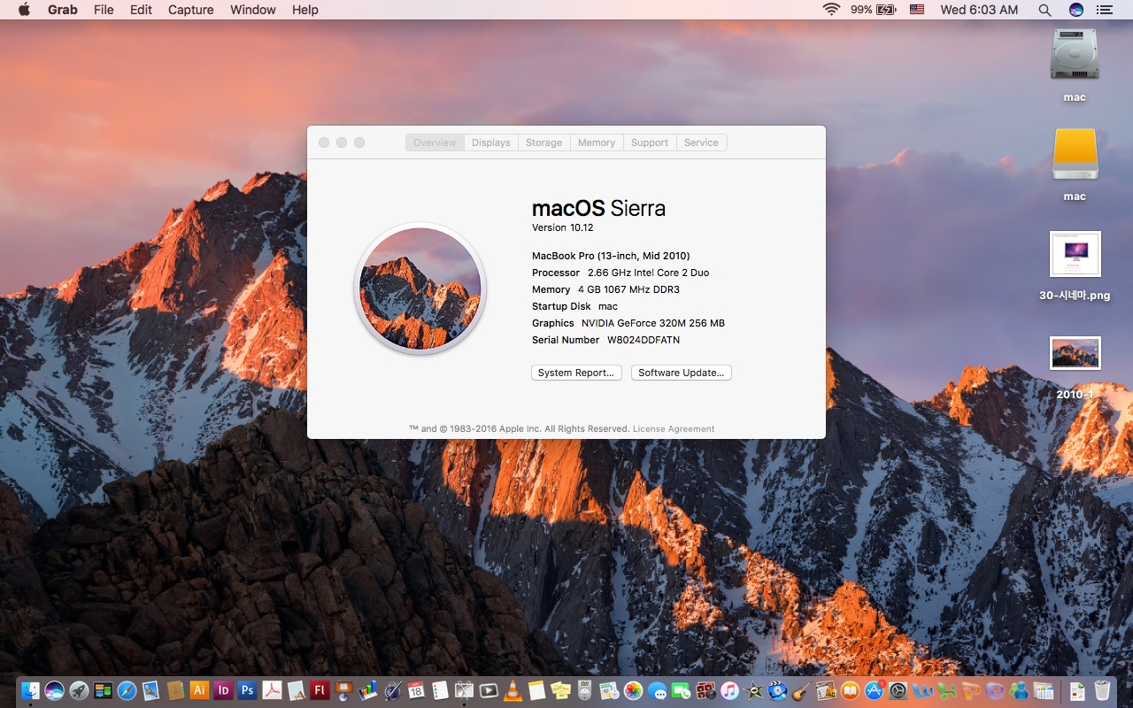 맥os 시에라와 프로그램들 설치되어 있습니다