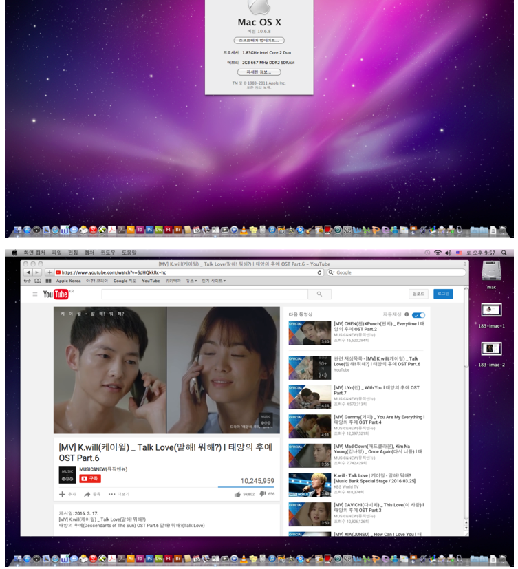 윈도우즈7 까지 완벽설치되어 있어 윈도우즈와 맥을 왔다 갔다 하면서