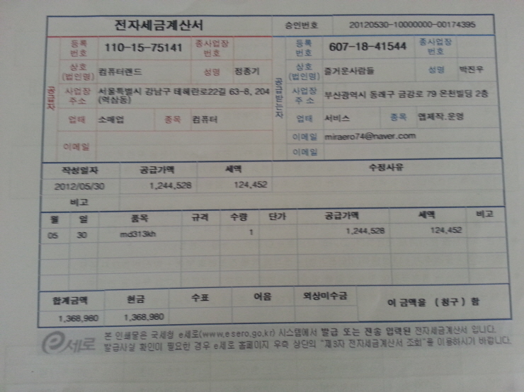 2012년 5월30일 구매(아래 영수증 참조 ^^) ios 앱 작업용으로 구매하여 2달 정도