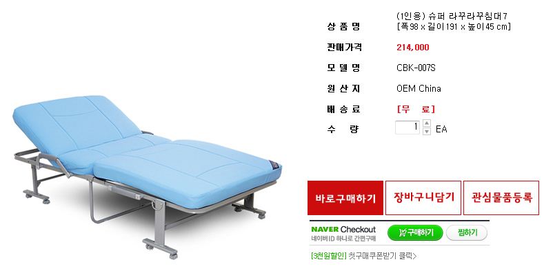 라꾸라꾸슈퍼 1인용 침대(폭 89-길이 191-높이 45cm)