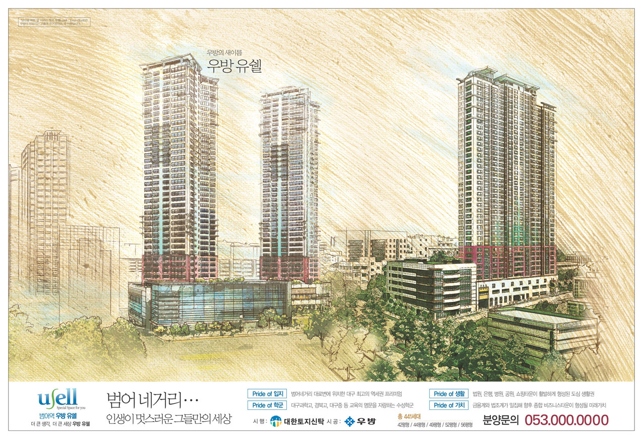 흠 ,,, 항상 올려주시는 작품들 감탄 캬~~ 하면서 보고있습니다 ^^ 근데여,, 이거 디자이너의 눈으로 보면,, 훌륭하지만, 저 광고보니깐, 저기 분양받고 싶은 맘이 안들어여 횡하고,, 어둡고,, 썰렁해보여여 아파트가, ㅡㅡ^ 그래서 미끄러지셨나봐~~요