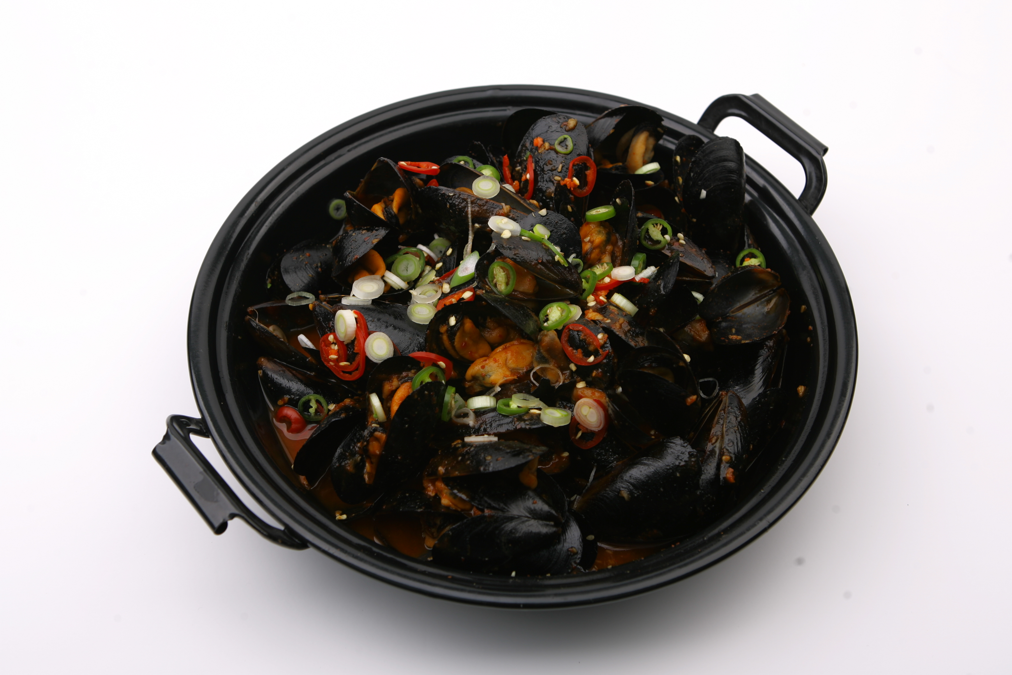 홍합으로 만든 메뉴 요리 사진 입니다.